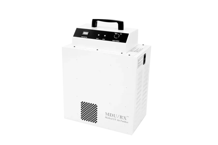 MDU/RX™ er innrettet for reduksjon av bakterier, MS2-virus, Phi-X174-virus og SARS-CoV-2-virus i luft i medisinske fasiliteter. SARS-CoV-2 er viruset som forårsaker covid-19.